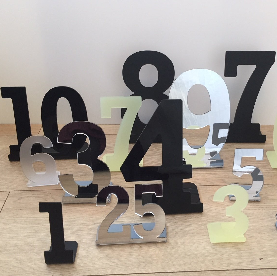 Food servers, risers and co-ordinating table numbers in our "Bud" range