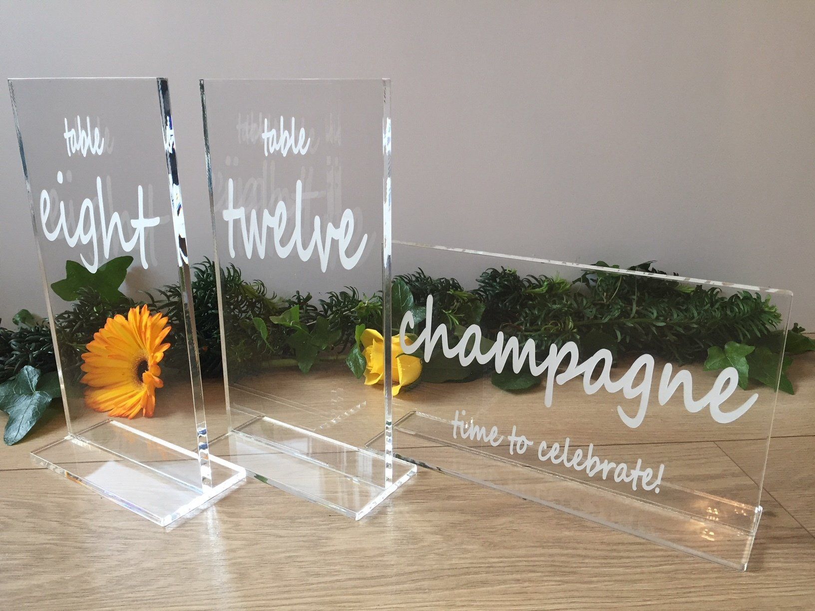 ButtonBlack frosted acrylic pegs, tags and boards either pre-engraved or to write on with chalk pens.